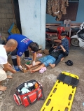งานกู้ชีพออกช่วยเหลืออุบัติเหตุรถจักรยานยนต์ล้มเองบริเวณบ้านจะคำน้อย