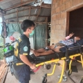 เจ้าหน้าที่กู้ชีพ อบต.แม่สลองใน ออกบริการตามแบบคำร้องขอรับบริการรถพยาบาลฉุกเฉินกู้ชีพ (กรณีผู้ป่วยติดเตียง) จากโรงพยาบาลแม่ฟ้าหลวง ในนำส่งบ้านสันมะเค็ด (ม.23)