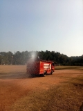 งานป้องกันฯ ได้รับมอบหมายหน้าที่จากรองนายกสมชาย ดวงติ๊บ ให้นำรถบรรทุกน้ำ ออกพ่นละอองน้ำ เพื่อลดฝุ่นบริเวณสนามกีฬากลางตำบลแม่สลองใน
