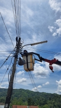 เจ้าหน้าที่กองช่างได้ออกปฏิบัติหน้าที่ ซ่อมแซมไฟกิ่งสาธารณะ ณ หมู่ที่ 16 บ้านจะคำน้อย