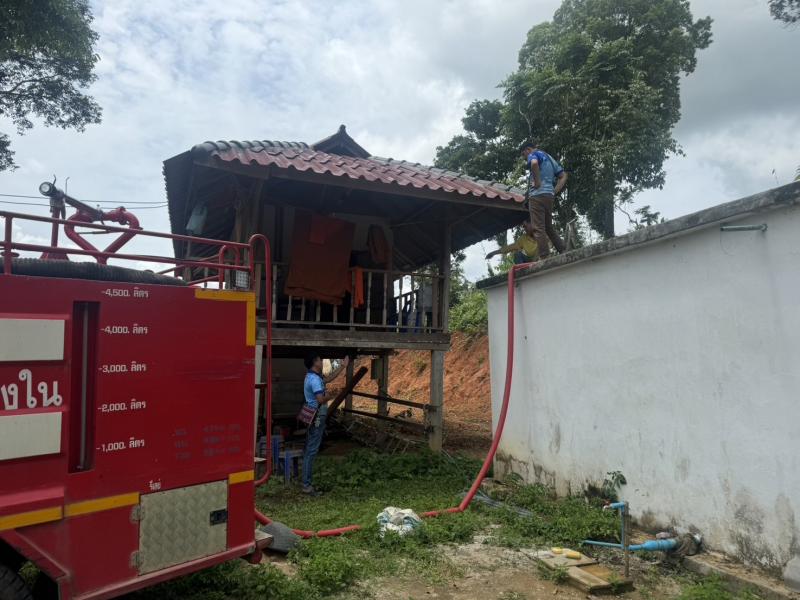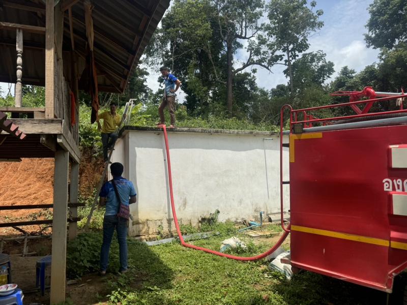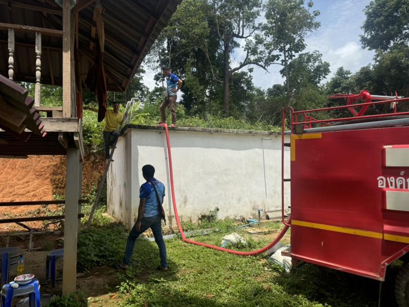 งานป้องกันฯ ออกบริการส่งน้ำเพื่อใช้อุปโภคบริโภคให้กับวัดห้วยส้าน (หมู่ที่ 8)