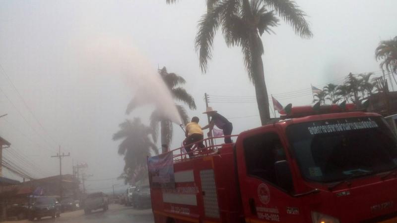 วันที่ 17 มีนาคม 2563 งานป้องกันและบรรเทาสาธารณภัย อบต.แม่สลองใน นำรถบรรทุกน้ำไปฉีดพ่นละอองน้ำ เพื่อลดภาวะฝุ่นละออง PM 2.5 และเพิ่มความชุ่มชื้นในอากาศ