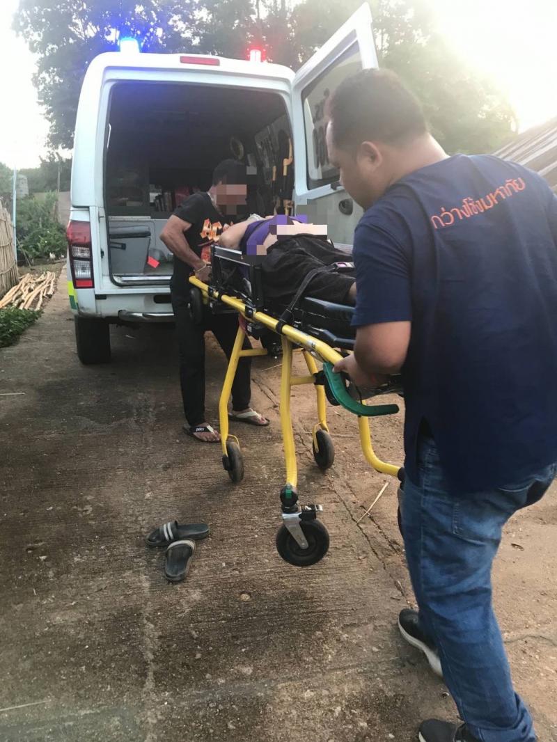 ทีมงานกู้ชีพ ออกช่วยเหลือผู้ป่วยมีอาการหายใจเหนื่อยหอบมีไข้สูง บ้านห้วยกระ