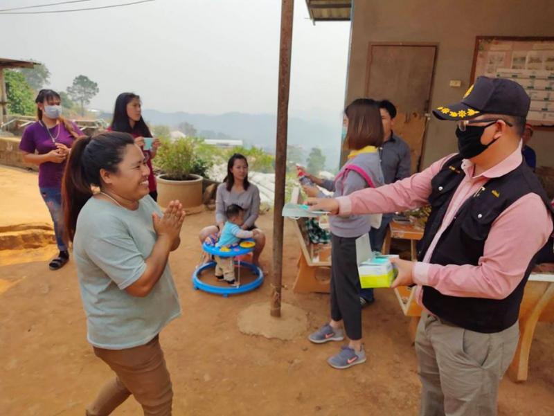 แจกหน้ากากอนามัยให้กับชาวบ้าน บ้านหัวแม่คำ