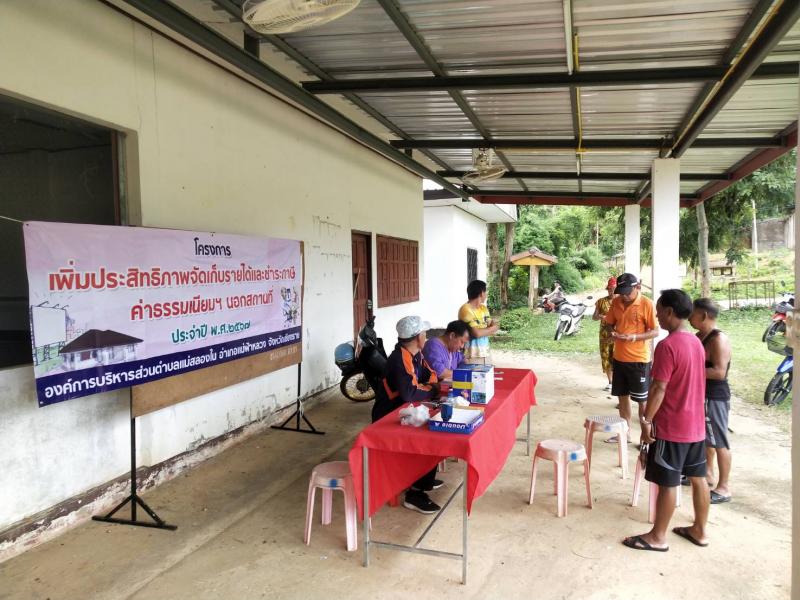งานจัดเก็บรายได้ ลงพื้นที่ ออกเก็บค่าขยะมูลฝอย นอกสถานที่ บ้านห้วยมุ หมู่ที่ 5