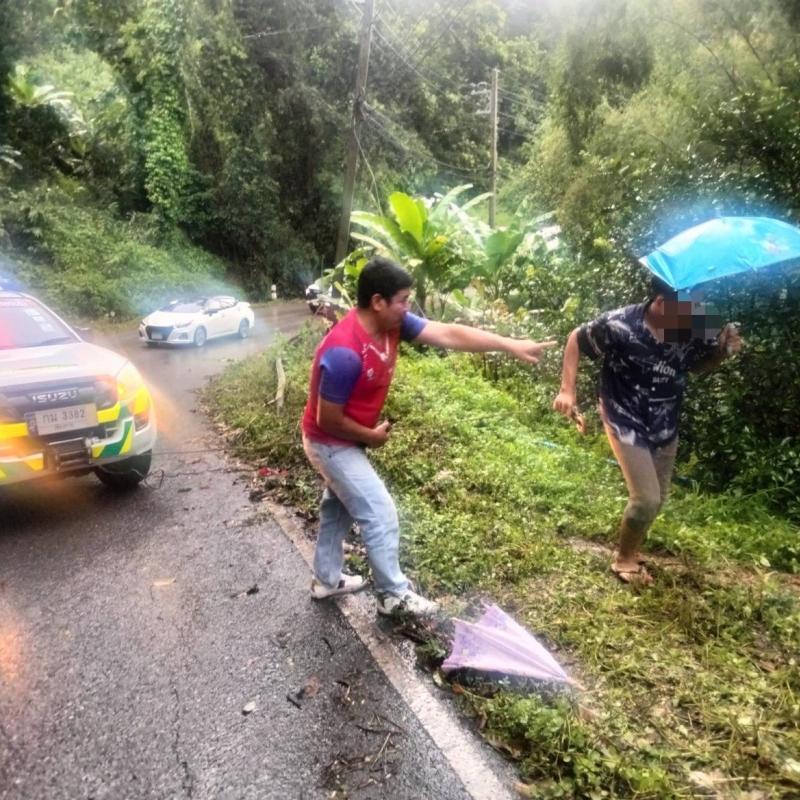 ทีมงานกู้ชีพร่วมกับงานป้องกันฯ ให้ออกช่วยเหลือ รถชาวบ้านตกข้างทาง ที่บริเวณบ้านผาเดื่อ หมู่ที่ 6