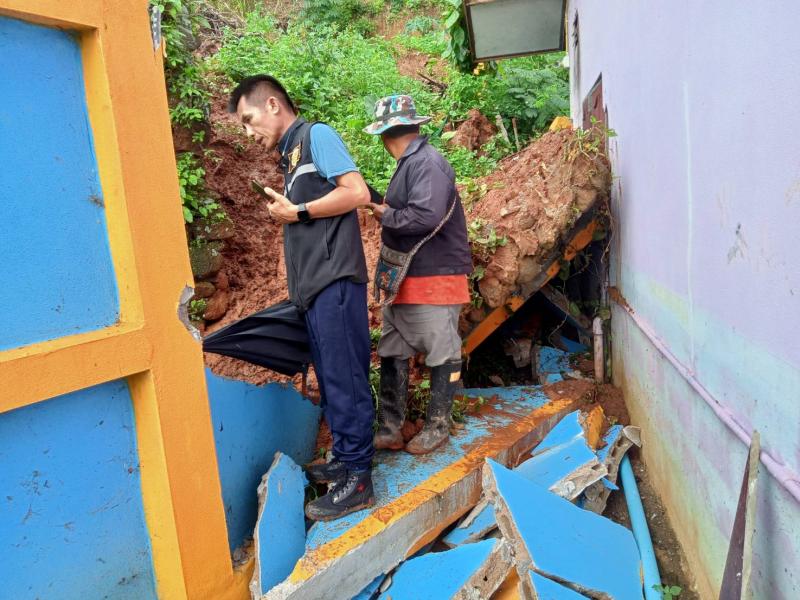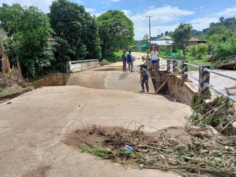 รองนายกสมชาย ดวงติ๊บ และทีมงานป้องกันฯ ลงพื้นที่สำรวจความเสียหายจากเหตุดินสไลด์และสำรวจคอสะพานชำรุด 2 แห่ง