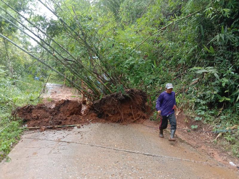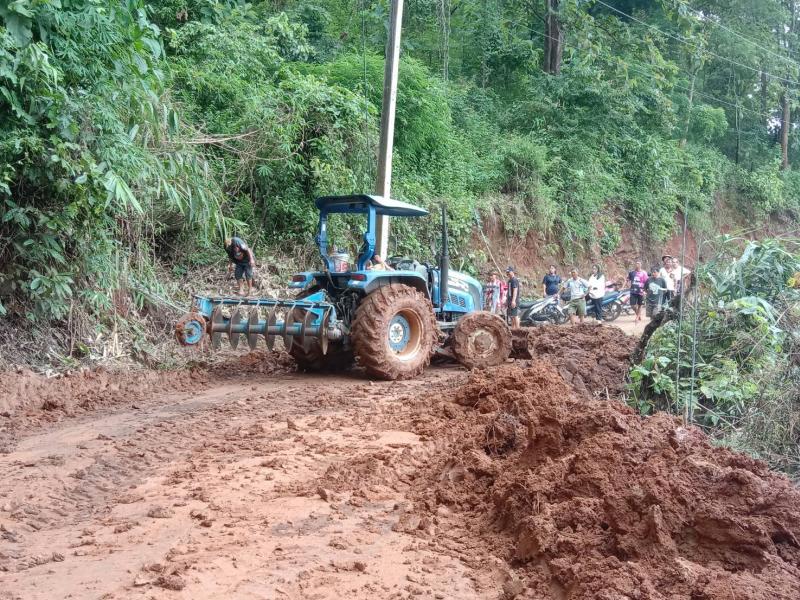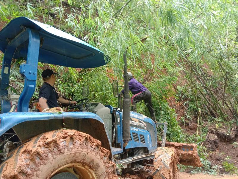 ทีมงานป้องกันฯ นำรถไถลงพื้นที่ปรับดินสไลด์ จำนวน 3 หมู่บ้าน ได้แก่ บ้านมะหินกอง (หมู่ที่ 11),บ้านอาแหละ (หมู่ที่ 15) และบ้านหินคำ (หมู่ที่ 27)