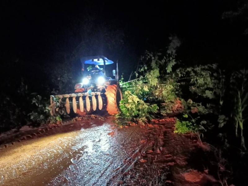 ทีมงานป้องกันฯได้นำรถไถออกปฏิบัตหน้าที่จากเหตุดินสไลด์ปิดถนนบ้านห้วยหยวกป่าป่าโซ (หมู่ที่ 9) และบ้านเล่าลิ่ว (หมู่ที่ 14)