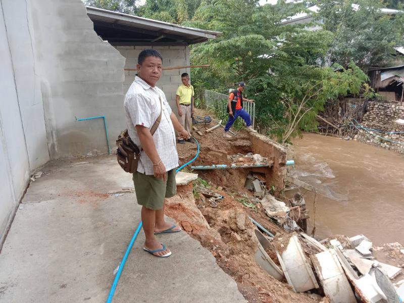 รองสมชาย ดวงติ๊บ และทีมงานป้องกันฯ ลงพื้นที่สำรวจที่อยู่อาศัยผู้ได้รับความเสียหายจากน้ำเซาะตลิ่ง บ้านนาโต่ (หมู่ที่ 20)