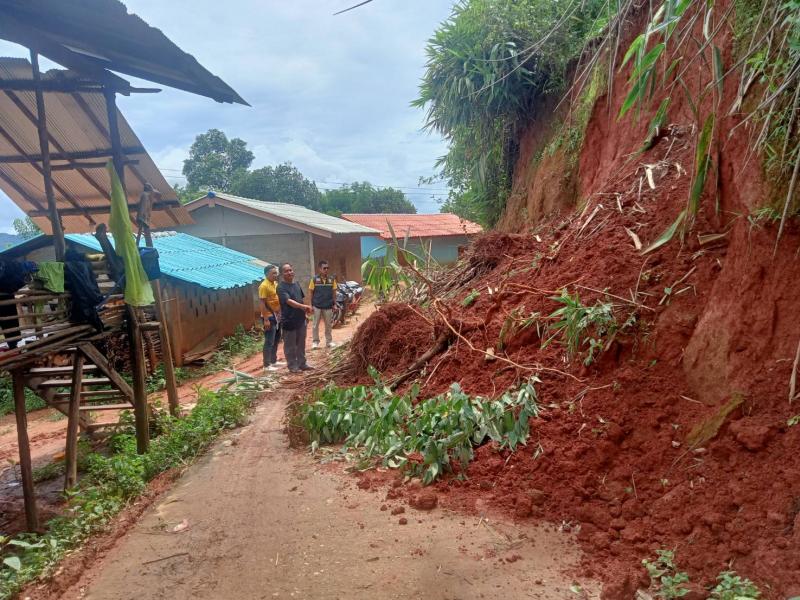 รองนายกสมชาย ดวงติ๊บ และทีมงานป้องกันฯ ลงพื้นที่สำรวจดินสไลด์ บ้านโป่งไฮ (หมู่ที่ 21)
