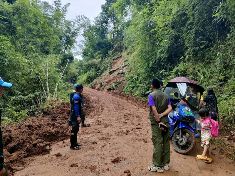ฝ่ายบริหาร พร้อมด้วยทีมงานป้องกันฯ นำรถไถลงพื้นที่ ปรับเกลี่ยดินสไลด์ ปิดทับถนนบริเวณบ้านมะหินกอง (หมู่ที่ 11) และบ้านห้วยหก (หมู่ที่ 10)