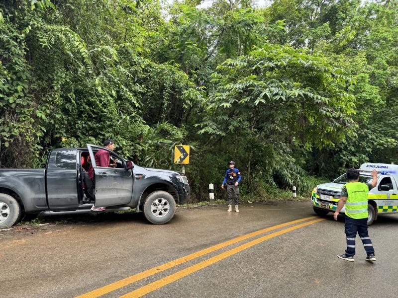 ทีมงานป้องกันฯ ร่วมกับทีมงานกู้ชีพ ออกช่วยเหลืออุบัติเหตุรถตกข้างทาง