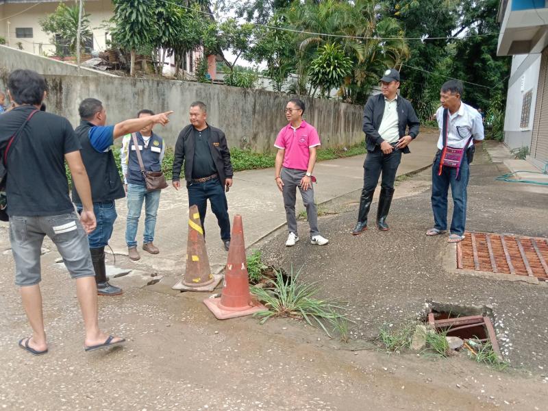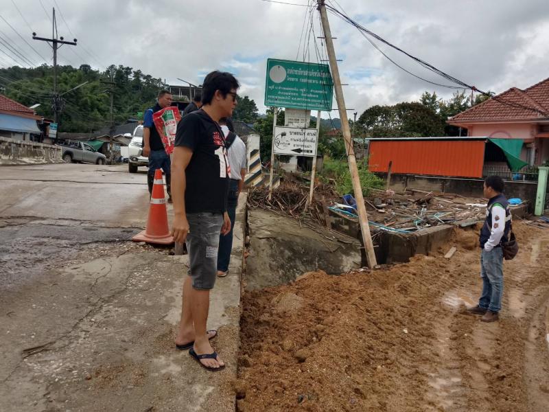 นายก พร้อมด้วยปลัด และงานป้องกันฯ งานกองช่าง ผู้นำชุมชน ออกสำรวจคอสะพานทรุดตัว บริเวณพื้นที่บ้านพะน้อย หลังตลาดไททอง