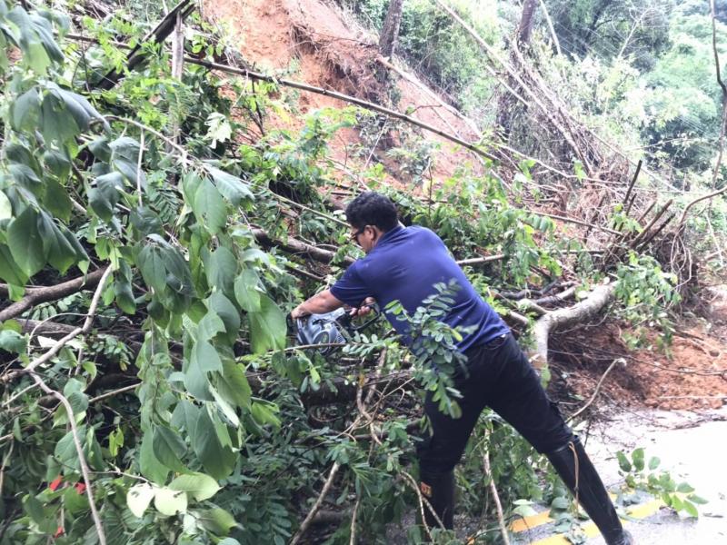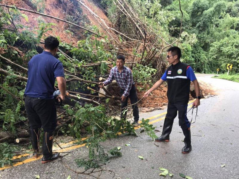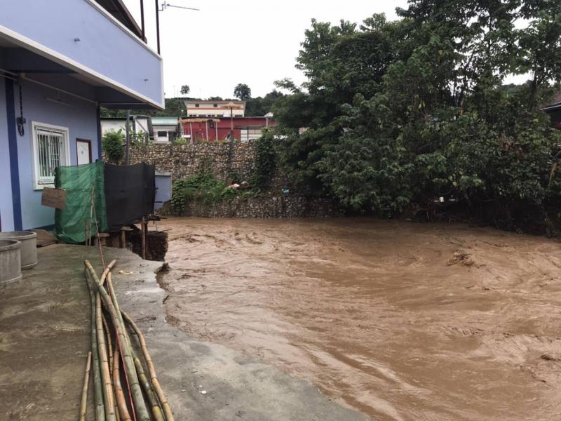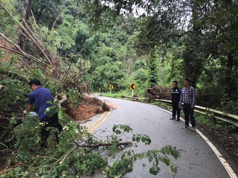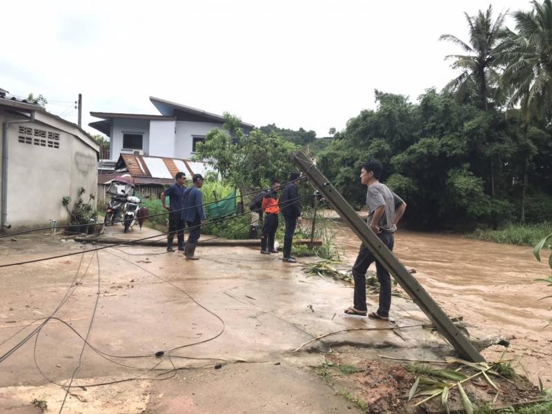 รองนายก สมชาย ดวงติ๊บ พร้อมทีมงานป้องกัน ลงพื้นที่ สำรวจความเสียหายดินสไลด์ลงแม่น้ำคำและตลาดไทยทอง (ม.12)