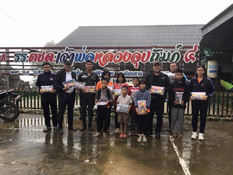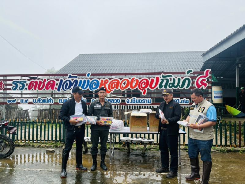 นายก พร้อมด้วยปลัด และเจ้าหน้าที่ มอบอุปกรณ์การเรียนให้กับ โรงเรียน ตชด.เจ้าพ่อหลวงอุปถัมภ์4 พร้อมทั้งมอบถุงยังชีพให้กับผู้ใหญ่บ้านเพื่อส่ง ต่อให้ผู้ประสบภัยในพื้นที่