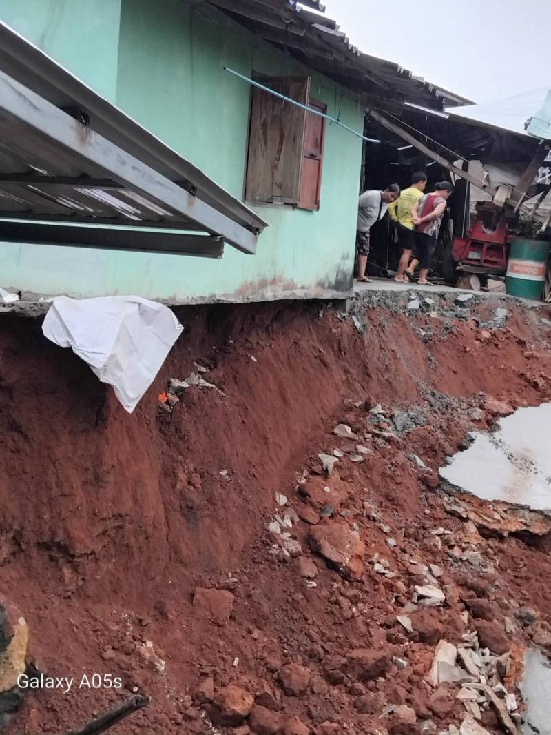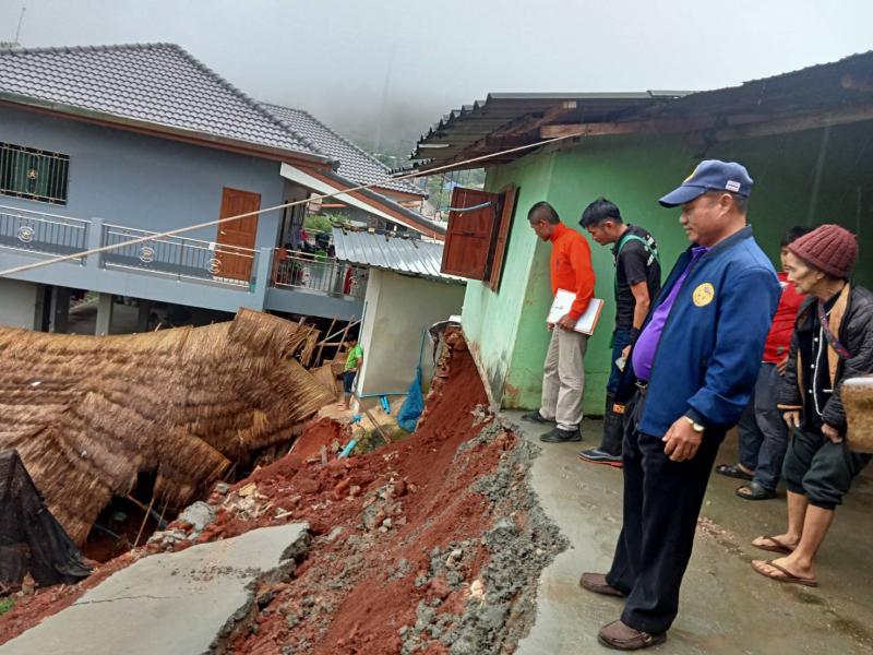 เจ้าหน้าที่ป้องกันฯ ออกสำรวจเหตุดินสไลด์ทำให้ที่อยู่อาศัยของชาวบ้านได้รับความเสียหาย