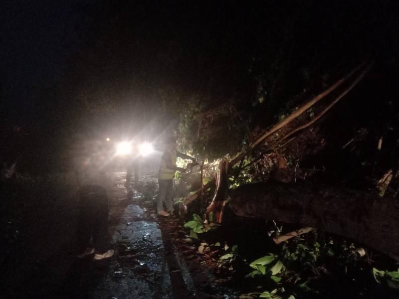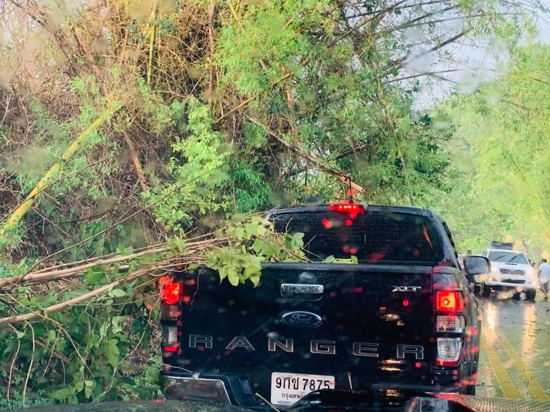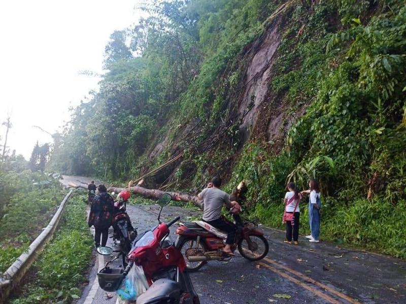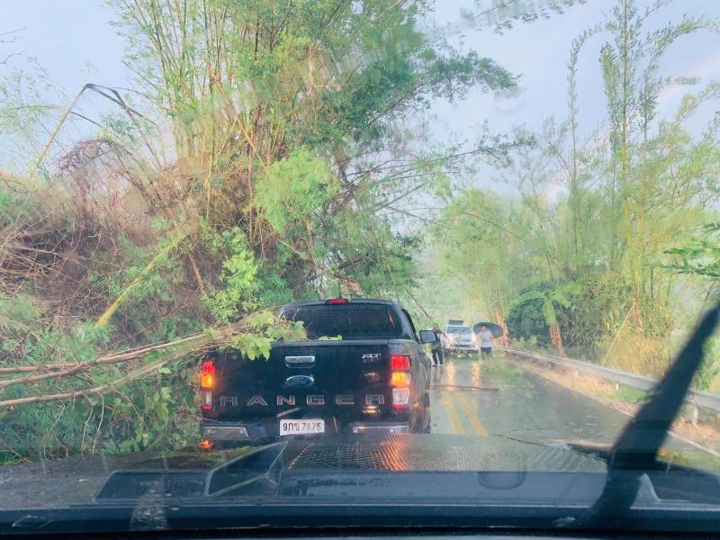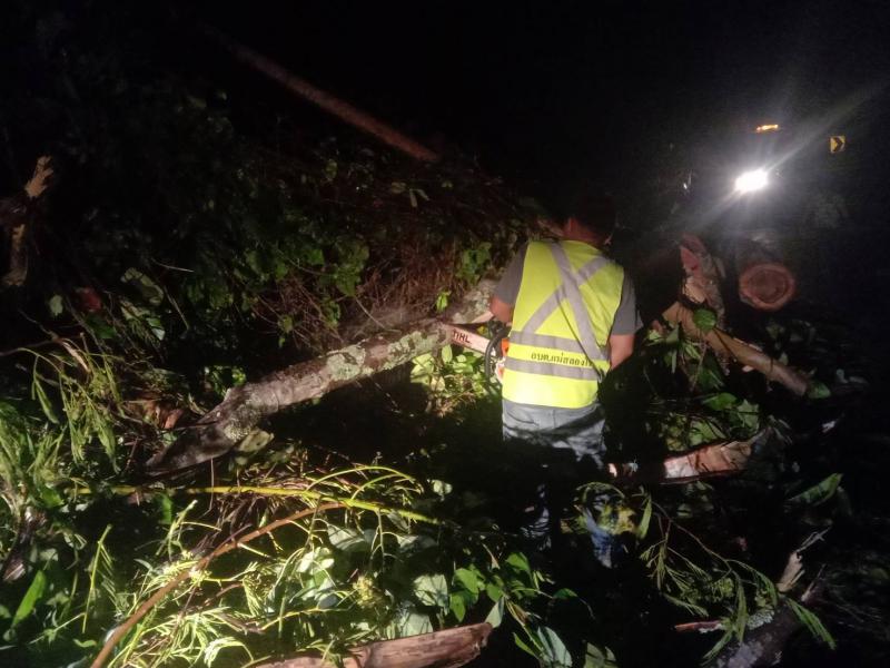 พายุฝนพัดถล่ม ต้นไม้ใหญ่โค่นล้มขวางถนนเส้นทางขึ้นแม่สลองใน อ.แม่ฟ้าหลวง จ.เชียงราย