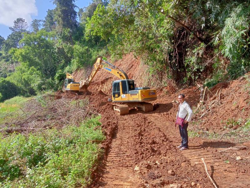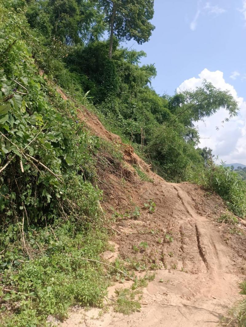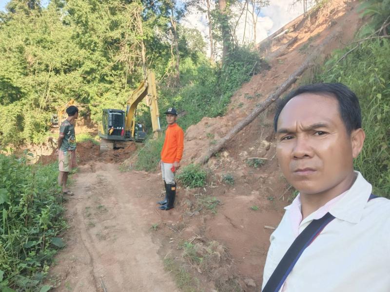 งานป้องกันฯ ลงพื้นที่สำรวจถนนถูกตัดขาดและการปรับถนนที่ได้รับความเสียหายจากเหตุอุทกภัย ณ บ้านเล่าลิ่ว หมู่ที่ 14