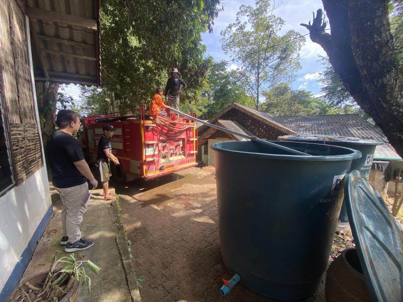 งานป้องกันฯ อกบริการส่งน้ำเพื่อใช้อุปโภค บริเวณ ค่ายบำบัดยาเสพ (กอ.) ตามเอกสารขอความช่วยเหลือฯ ที่บ้านห้วยผึ้ง (ม.2)