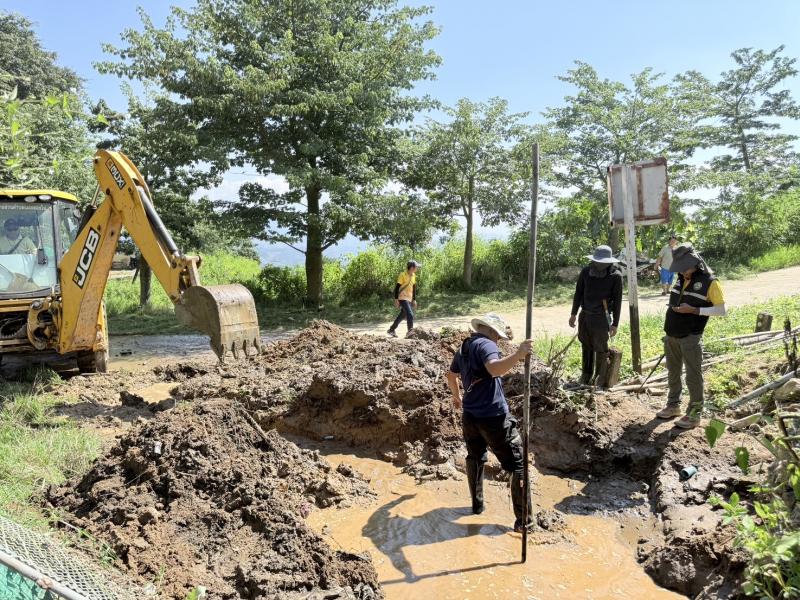 ฝ่ายบริหารพร้อมด้วยทีมงานป้องกันฯ นำรถไถ และรถ JCB ลงพื้นที่ขุดท่อระบายน้ำ ปรับพื้นที่ลานจอดรถ และขยายไหล่ทางบริเวณสวนดาวจำรัสแสง
