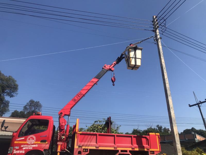 เจ้าหน้าที่กองช่าง ได้ออกปฏิบัติหน้าที่ซ่อมแซมโคมไฟกิ่งสาธารณะ (หมู่ 7) บ้านแสนใจ