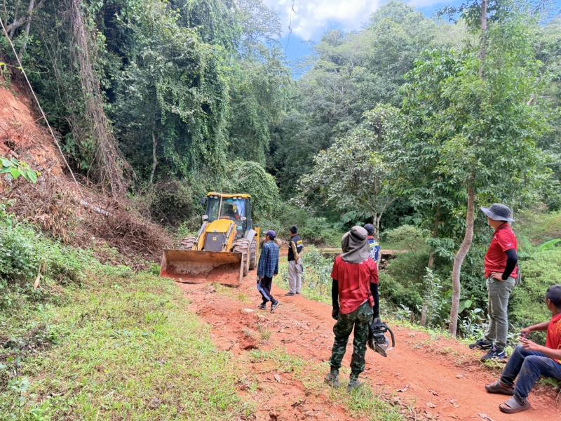 ฝ่ายบริหาร พร้อมด้วยงานป้องกันฯ ลงพื้นที่ เปิดเส้นทางถนนทางเข้าวนอุทยาน บ้านหัวแม่คำ (ม.4 )
