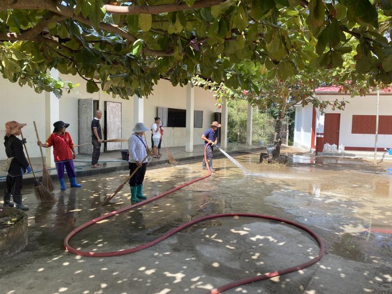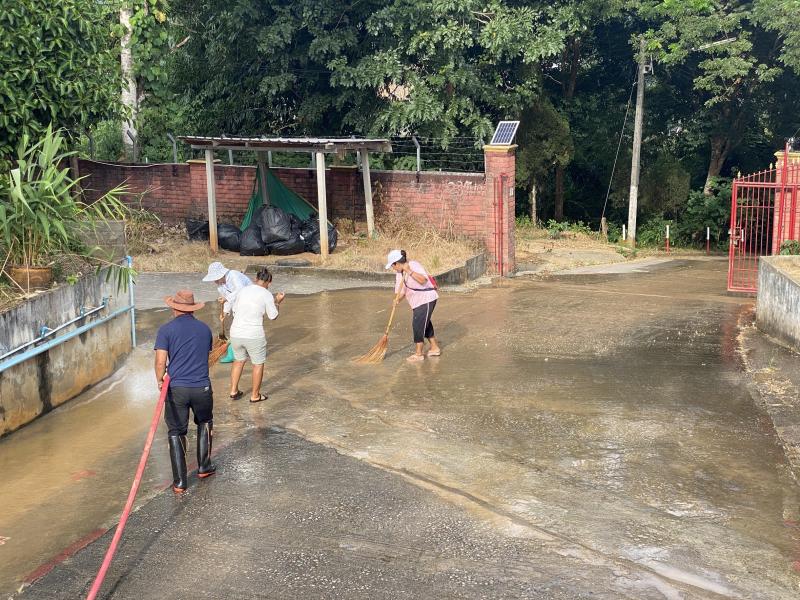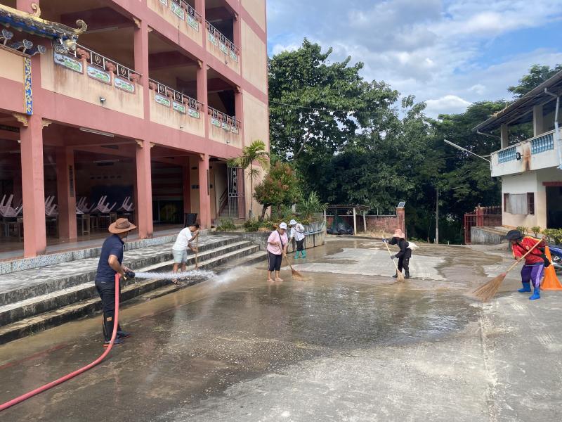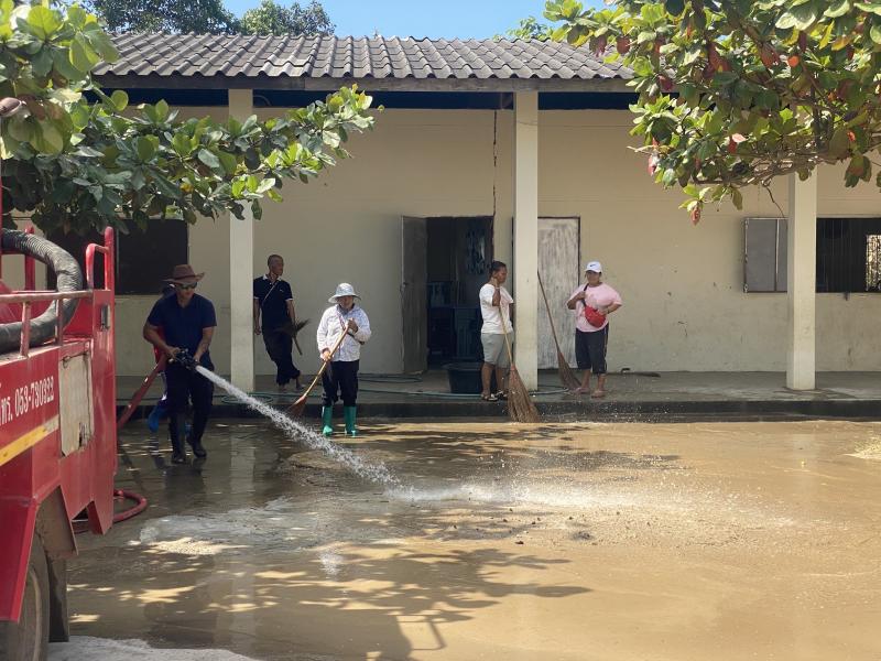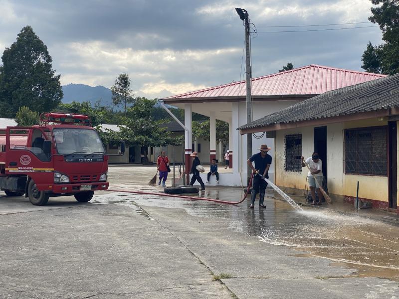 งานป้องกันฯ ได้รับมอบหมายหน้าที่จากรองนายกสมชาย ดวงติ๊บ ให้นำรถบรรทุกน้ำ ออกบริการล้างทำความสะอาดสนามโรงเรียนจีนบ้านห้วยผึ้ง (ม.2)