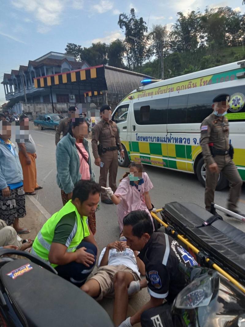 วันที่ 30 พฤศจิกายน 2567 เวลา 15:40 น เจ้าหน้าที่กู้ชีพฯ ออกช่วยเหลืออุบัติเหตุที่บริเวณตลาดประชารัฐ ก่อนจะถึงบ้านหินแตก เจ้าหน้าที่นำส่งรักษาที่โรงพยาบาลแม่ฟ้าหลวง และเมื่อเวลา 17.40 น ได้รับแจ้งเหตุ วอ 40 ที่สะพานห้วยอื้น หมู่ 13 ป๊อก 9 ตำบลเทอดไทย มีผู้รับบาดเจ็บ 3 ราย เจ้าหน้าที่นำส่งโรงพยาบาลเรียบร้อยแล้ว