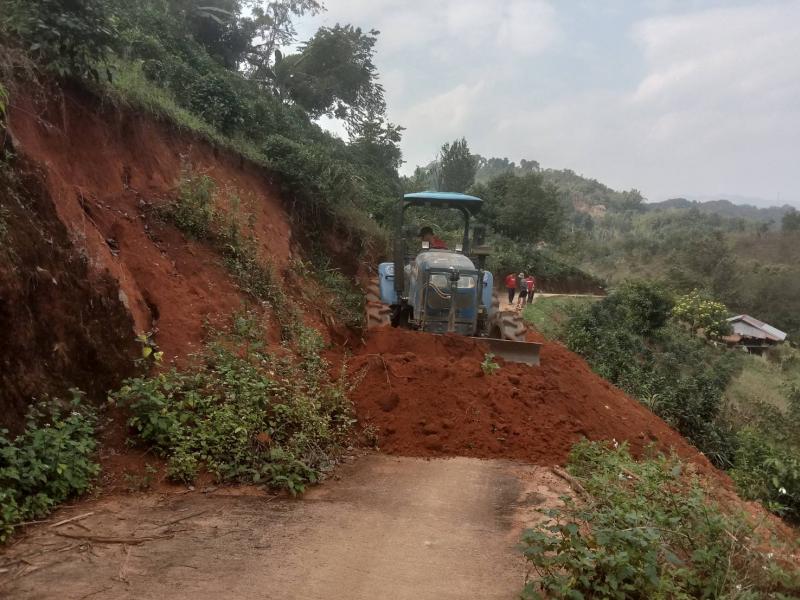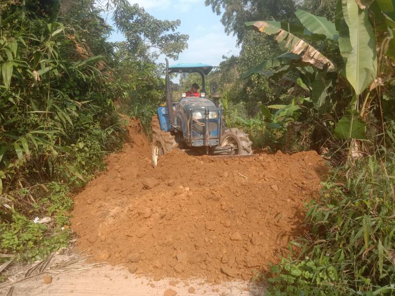 งานป้องกันฯ ได้รับมอบหมายหน้าที่จากรองนายกสมชาย ดวงติ๊บ ให้นำรถไถลงพื้นที่ปรับถนนทางเข้าการเกษตร ม.16 บ้านจะคำน้อย