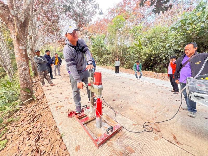 ทีมงานกองช่างและคณะกรรมการตรวจรับงานจ้าง ร่วมตรวจรับงานจ้างโครงการก่อสร้างถนนคอนกรีตเสริมเหล็ก บ้านมอล่อง