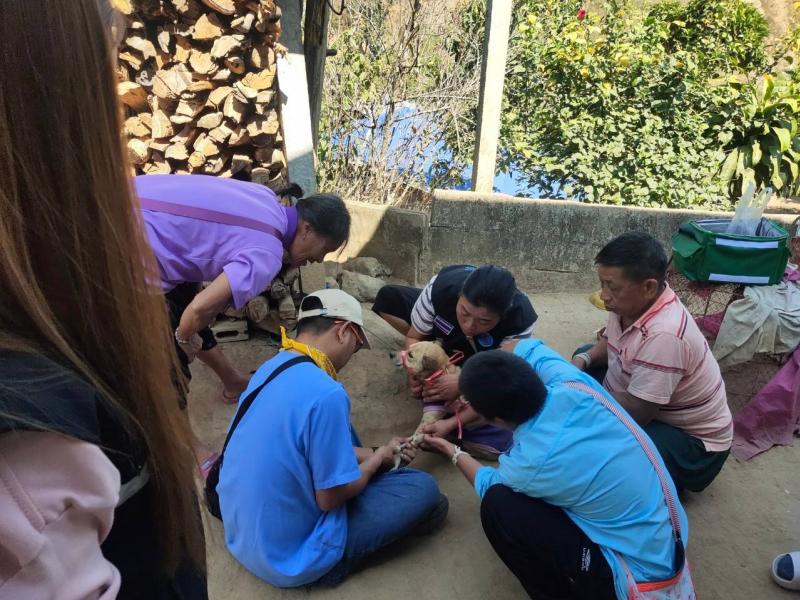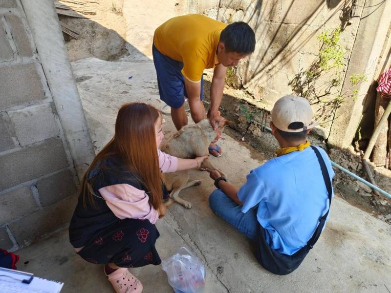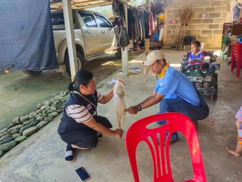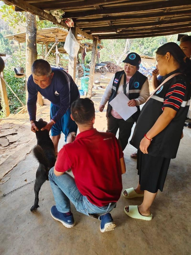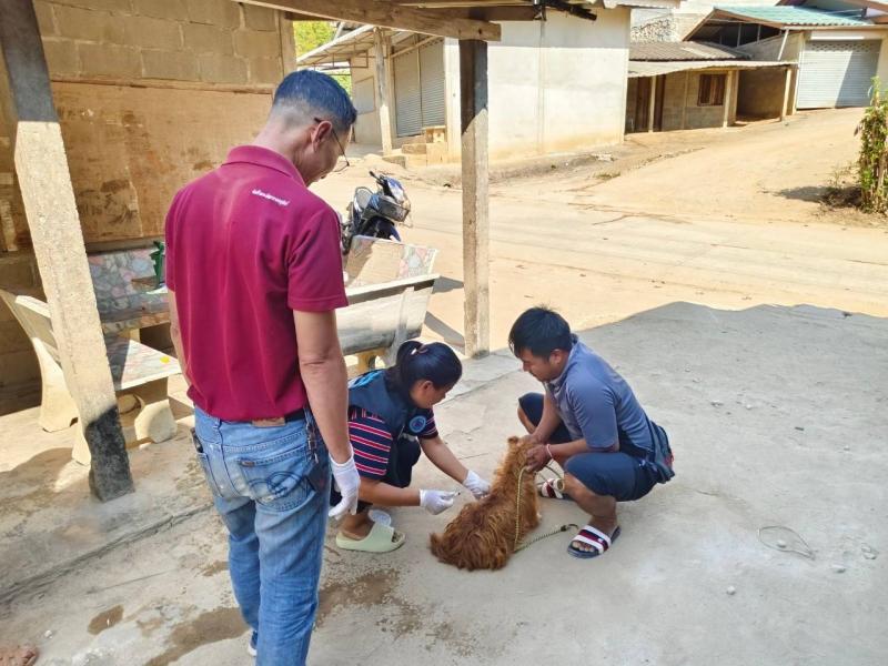 ฝ่ายบริหารงานสาธารณสุข ร่วมกับปศุสัตว์อำเภอแม่ฟ้าหลวง ลงพื้นที่ฉีดวัคซีนป้องกันโรคพิษสุนัขบ้าในสุนัขและแมว บ้านสันมะเค็ด
