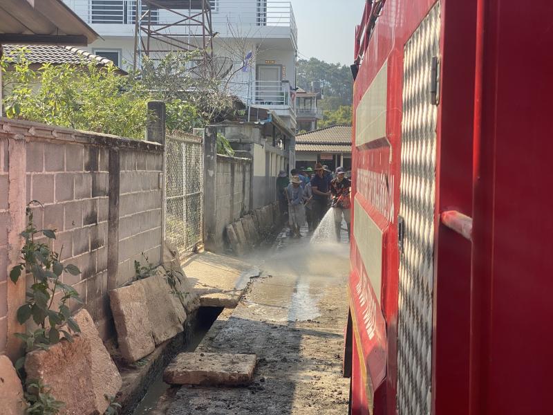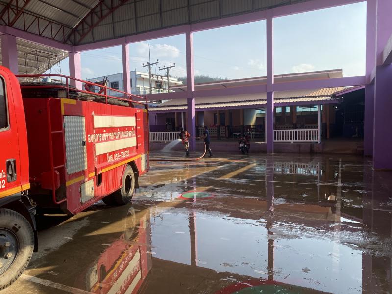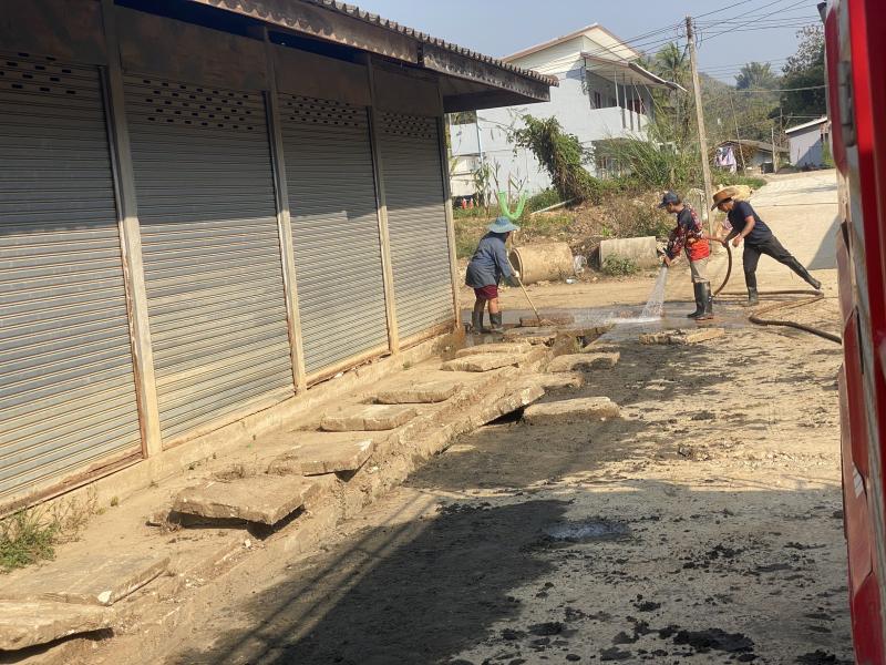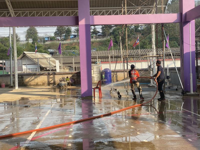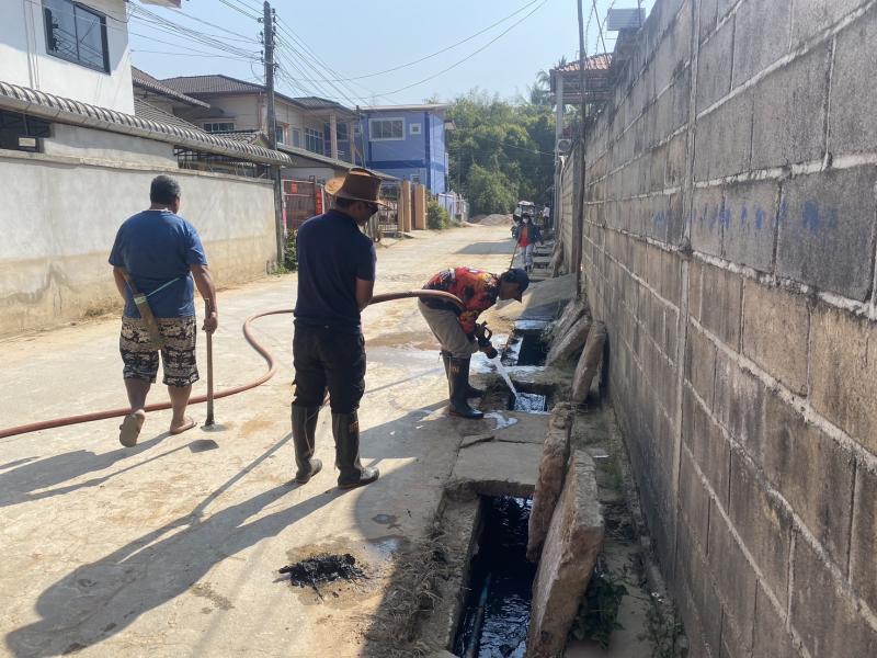 งานป้องกันฯ ออกบริการล้างร่องระบายน้ำ ตลาดไททอง และลานกิจกรรม ร.ร ตชด.พอ.3