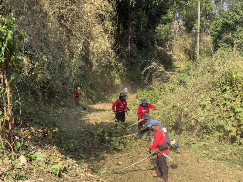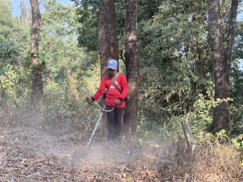 วันที่ 17 กุมภาพันธ์ 2568 นายสมชาย ดวงติ๊บ รองนายกองค์การบริหารส่วนตำบลแม่สลองใน ร่วมกับงานป้องกันและบรรเทาสาธารณภัยและ งานส่งเสริมการเกษตร และทหาร พัฒนา (กอ) เข้าร่วมโครงการป้องกันและแก้ไขปัญหาไฟป่าและหมอกควัน (แนวกันไฟ) โดยร่วมกับประชาชนบ้านอาโต่ (พะน้อย) ม.12 ได้จัดทำแนวกันไฟบริเวณป่าชุมชนหมู่บ้าน