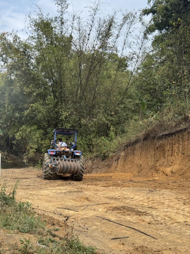 งานป้องกันฯ นำรถไถและรถเจซีบีออกปรับพื้นที่ บ้านเล่าลิ่ว