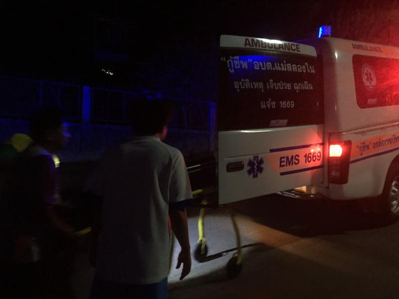 กู้ชีพ อบต.แม่สลองใน ให้การช่วยเหลือเหตุรถจักรยานยนต์ล้ม บริเวณหน้าบ้านพัก อบต.