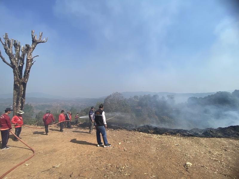 งานป้องกันฯ ได้รับมอบหมายจากรองนายกสมชาย ดวงติ๊บ ให้นำรถบรรทุก น้ำออกดับเพลิงไหม้ซังข้าวโพดบริเวณบ้านป่าแอ (หมู่ที่ 21)
