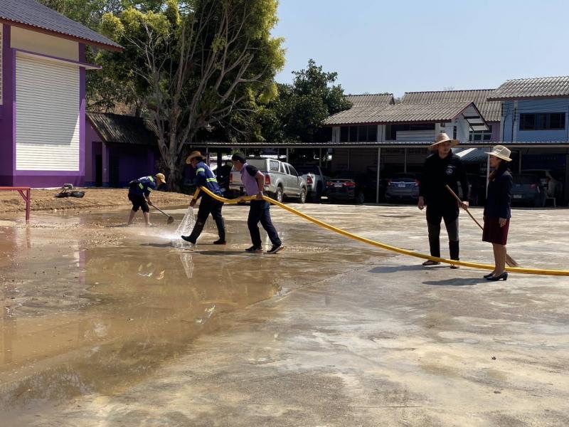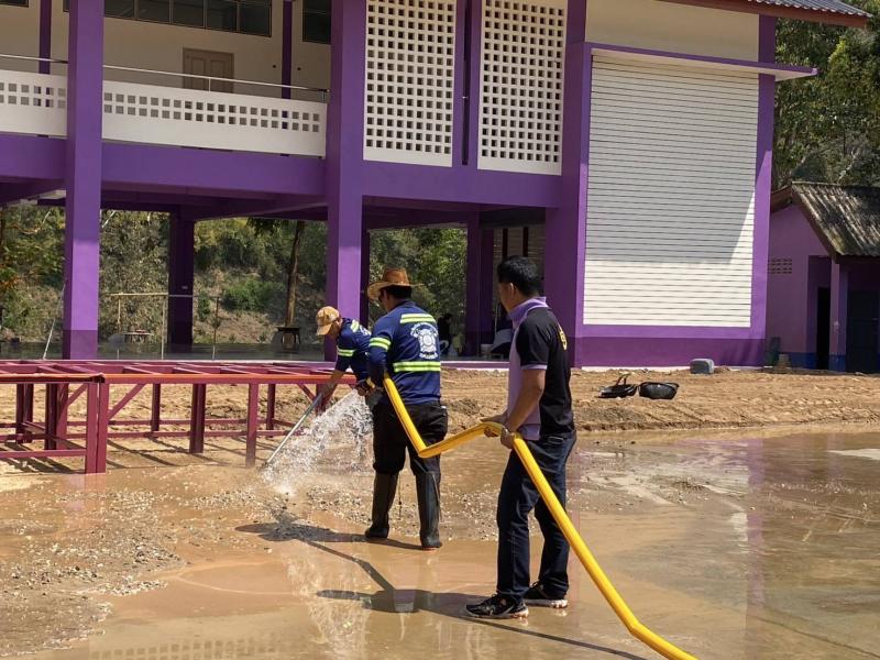 งานป้องกันฯ ออกบริการล้างลานกิจกรรม โรงเรียน ตชด.นาโต่