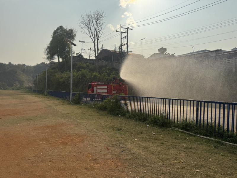 งานป้องกันและบรรเทาสาธารณภัย ได้รับมอบหมายหน้าที่จากรองนายกสมชาย ดวงติ๊บ ให้นำรถบรรทุกน้ำออกพ่นละอองน้ำ เพื่อลดฝุ่น pm 2.5 บริเวณสนามกีฬากลางตำบลแม่สลองใน และพื้นที่ใกล้เคียง