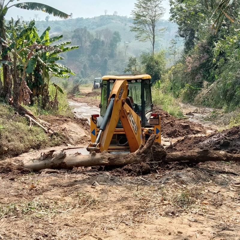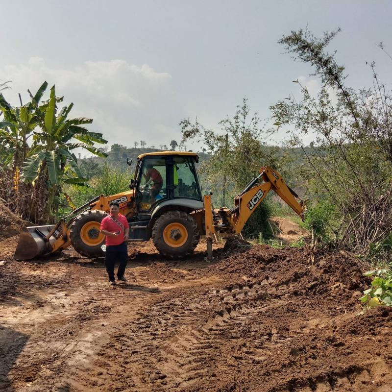 งานป้องกันฯ ได้รับมอบหมายหน้าที่จากรองนายกสมชาย ดวงติ๊บ ให้นำรถไถและรถเจซีบีลงพื้นที่ปรับถนนทางเข้าการเกษตรบ้านนาโต่