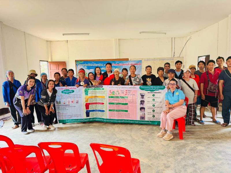 ฝ่ายบริหารงานสาธารณสุข ร่วมกับชมรม กำนันผู้ใหญ่บ้านตำบลแม่สลองใน อบรมให้ความรู้เรื่องการคัดแยกขยะ/ประชาคม บ้านห้วยโย