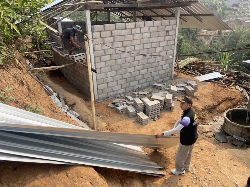 รองสมชาย ดวงติ๊บ ออกติดตามและร่วมด้วยช่วยกันสร้างบ้านให้กับผู้ยากไร้บ้านเล่าลิ่ว หมู่ที่ 14