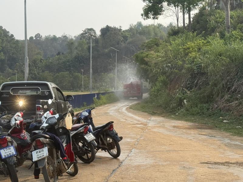 วันที่ 21 - 22 มีนาคม 2568 งานป้องกันและบรรเทาสาธารณภัย อบต.แม่สลองใน ได้รับมอบหมายหน้าที่จากรองนายกสมชาย ดวงติ๊บ ให้นำรถบรรทุกน้ำออกพ่นละอองน้ำ เพื่อลดฝุ่น pm 2.5 บริเวณสนามกีฬากลางตำบลแม่สลองใน และพื้นที่ใกล้เคียง