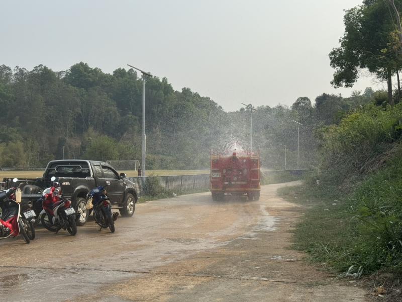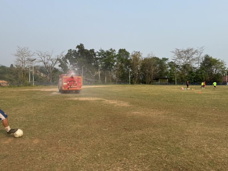 งานป้องกันฯ ออกพ่นละอองน้ำ เพื่อลดฝุ่น pm 2.5 บริเวณสนามกีฬากลาง
