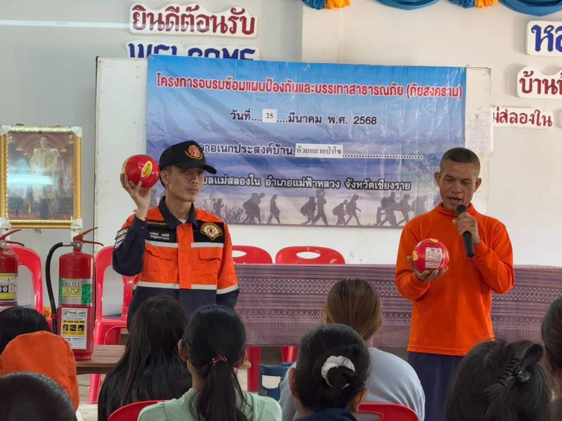 วันที่ 25 มีนาคม 2568 งานป้องกันและบรรเทาสาธารณภัย อบต.แม่สลองใน ได้ออกจัดโครงการฝึกซ้อมป้องกันและบรรเทาสาธารณภัย(อพยพจากภัยสงคราม)และอัคคีภัยให้แก่หมู่บ้านห้วยหยวกป่าโซ หมู่ที่ 9 ตำบลแม่สลองใน