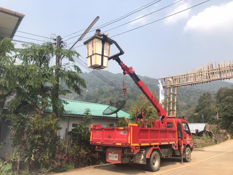 กองช่าง องค์การบริหารส่วนตำบลแม่สลองใน ได้ซ่อมแซมระบบไฟฟ้าสาธารณะ(ไฟกิ่ง) ที่ชำรุด บ้านหัวแม่คำ