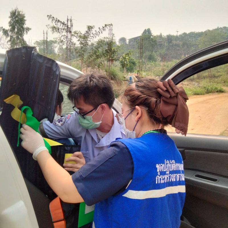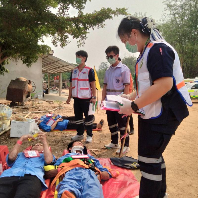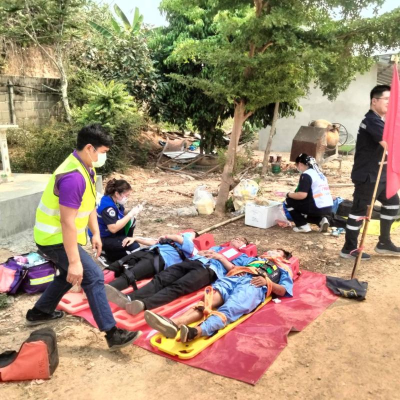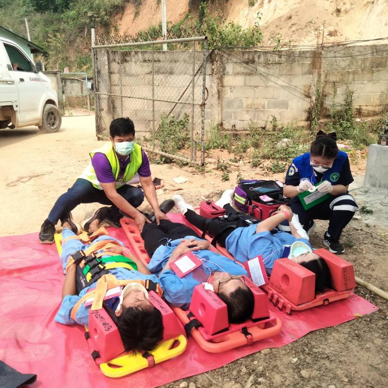 งานกู้ชีพ ร่วมกับโรงพยาบาลแม่ฟ้าหลวง ออกซ้อมแผนอุบัติเหตุ เพื่อเตรียมความพร้อมในช่วงเทศกาลสงกรานต์