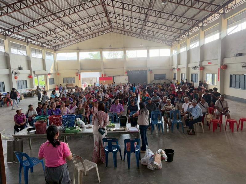อบรมให้ความรู้เรื่องการคัดแยกขยะ/ประชาคม ภายใต้โครงการส่งเสริมการจัดการขยะ ลดขยะ ลดโรคติดต่อในชุมชนตำบลแม่สลองใน ณ บ้านห้วยผึ้ง