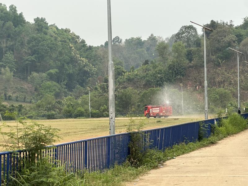 วันที่ 10 - 11 เมษายน 2568 งานป้องกันและบรรเทาสาธารณภัย อบต.แม่สลองใน ได้รับมอบหมายหน้าที่จากรองนายกสมชาย ดวงติ๊บ ให้นำรถบรรทุกน้ำออกพ่น ละอองน้ำ เพื่อลดฝุ่น pm 2.5 บริเวณสนามกีฬากลางตำบลแม่สลองใน