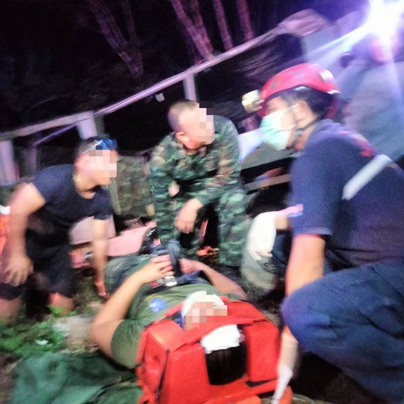 งานกู้ชีพ ออกช่วยเหลืออุบัติเหตุ รถทหารตกข้างทาง มีผู้ได้รับบาดเจ็บ 3 ราย